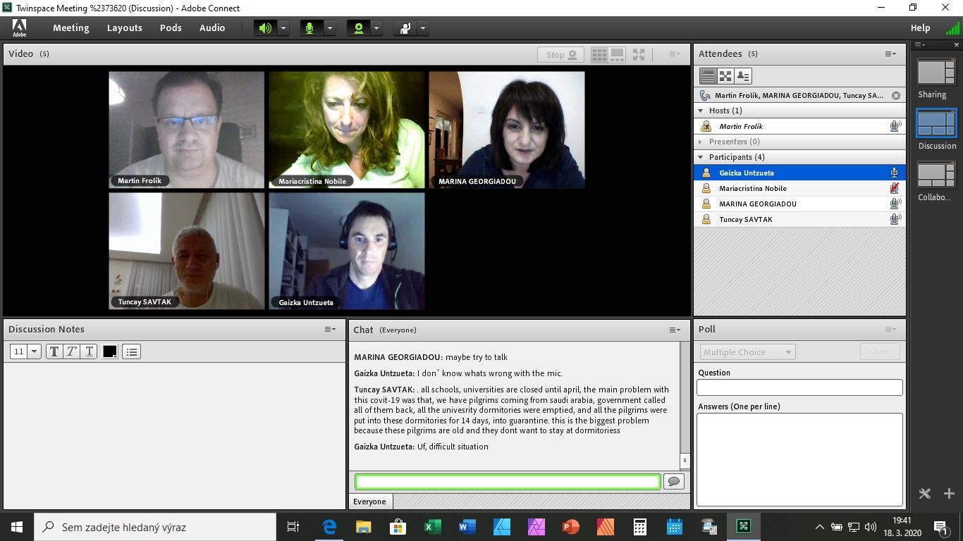 We met at a video-meeting on the e-Twinning portal to talk about our local activities and preparation for the next meeting in Antalya.